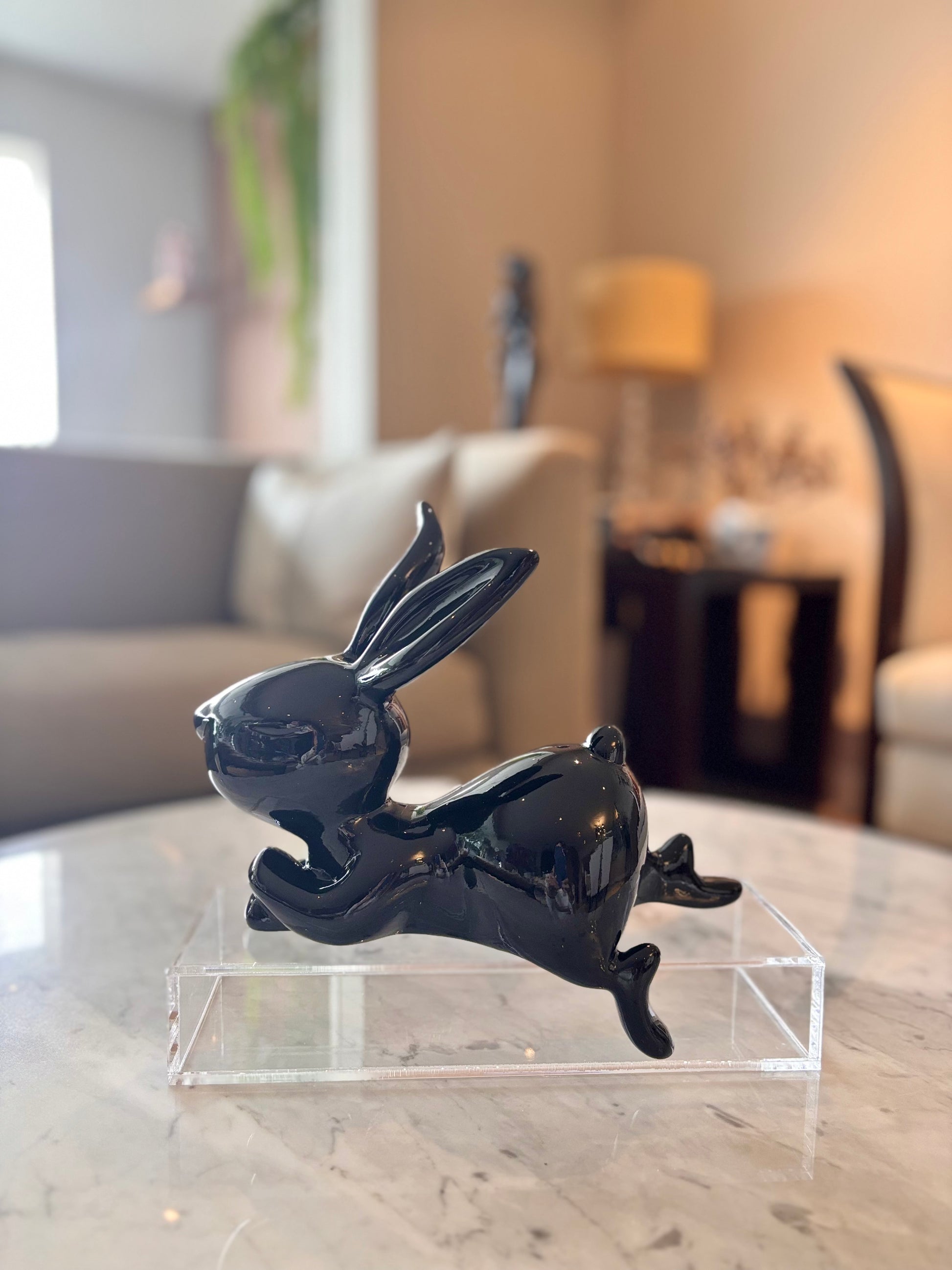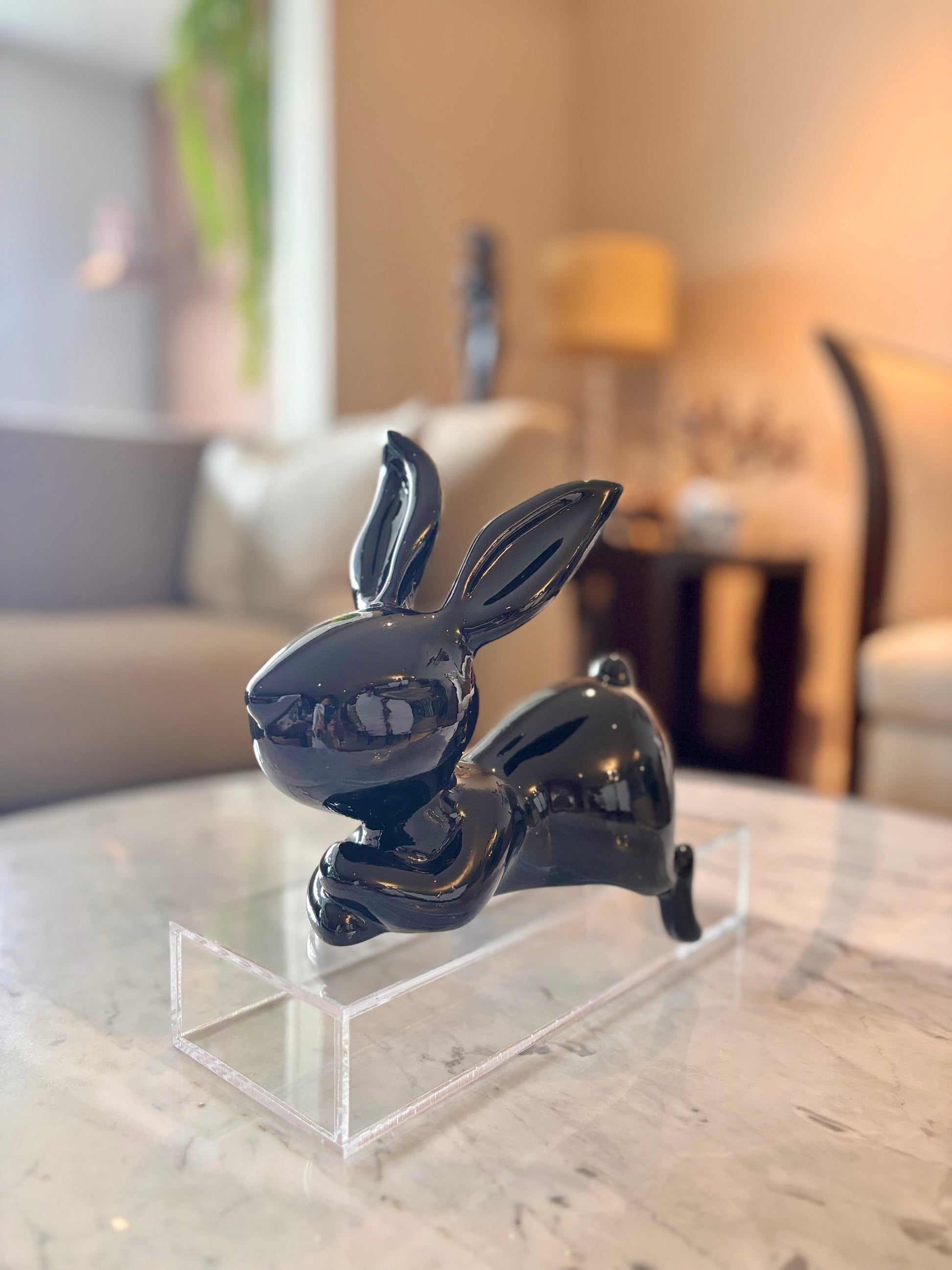 Escultura de coneja Lila hecha a mano en resina color negro.