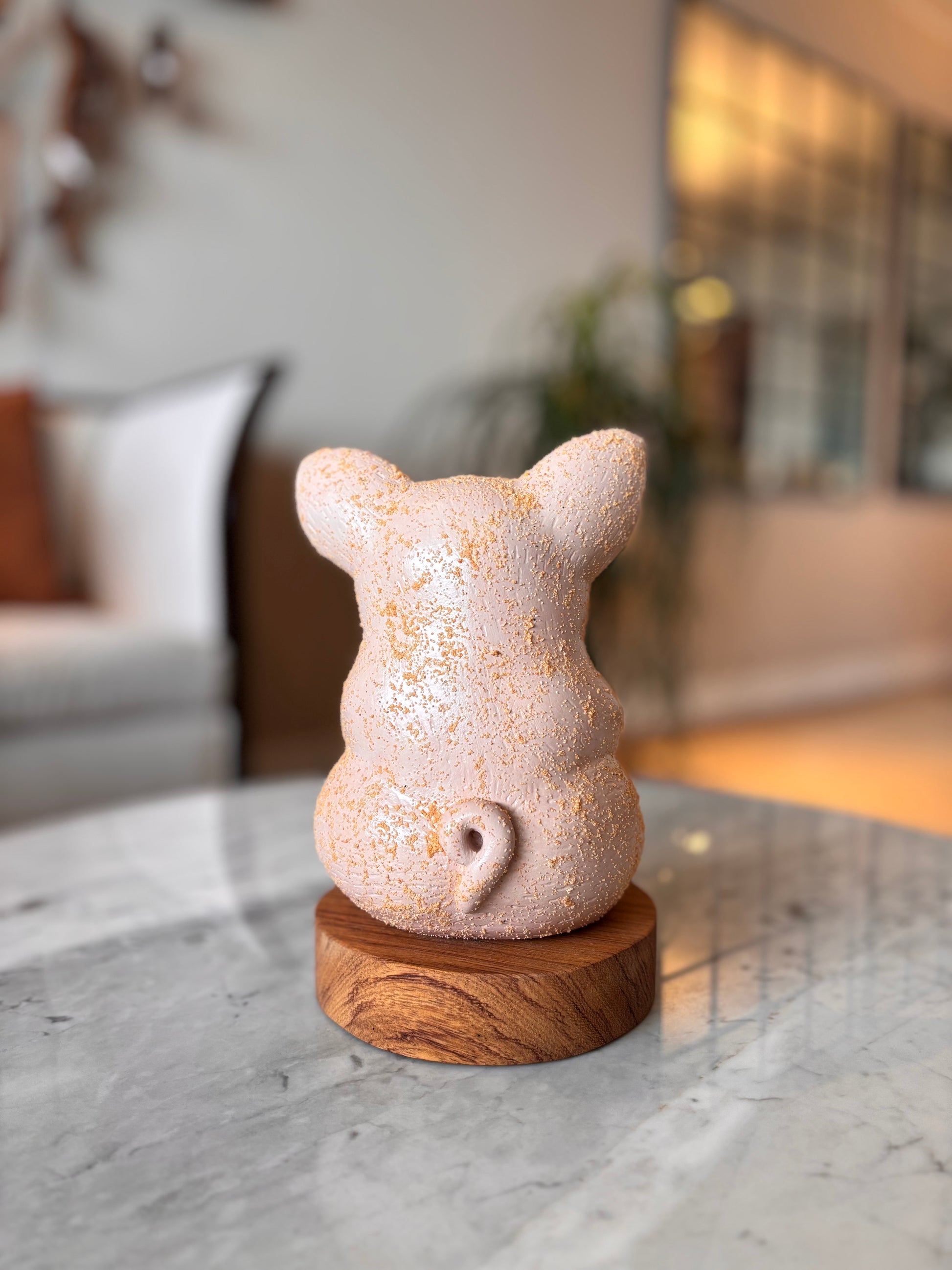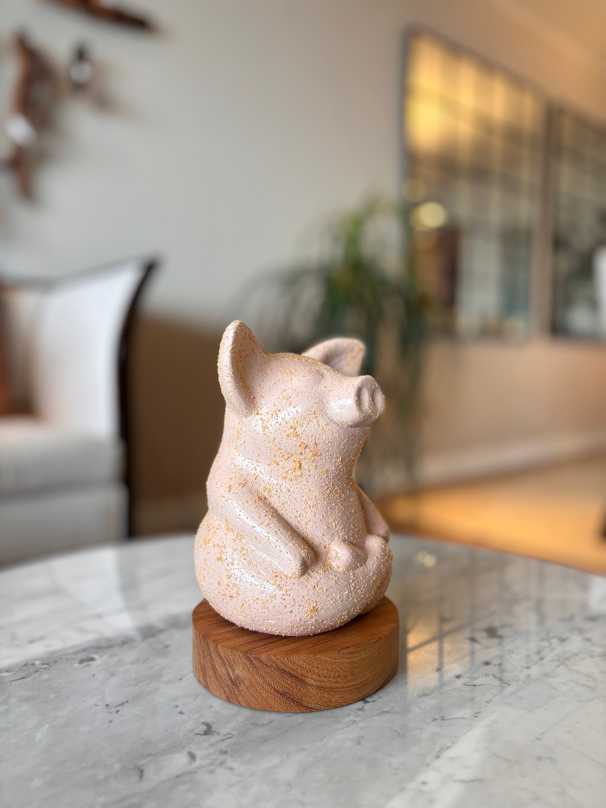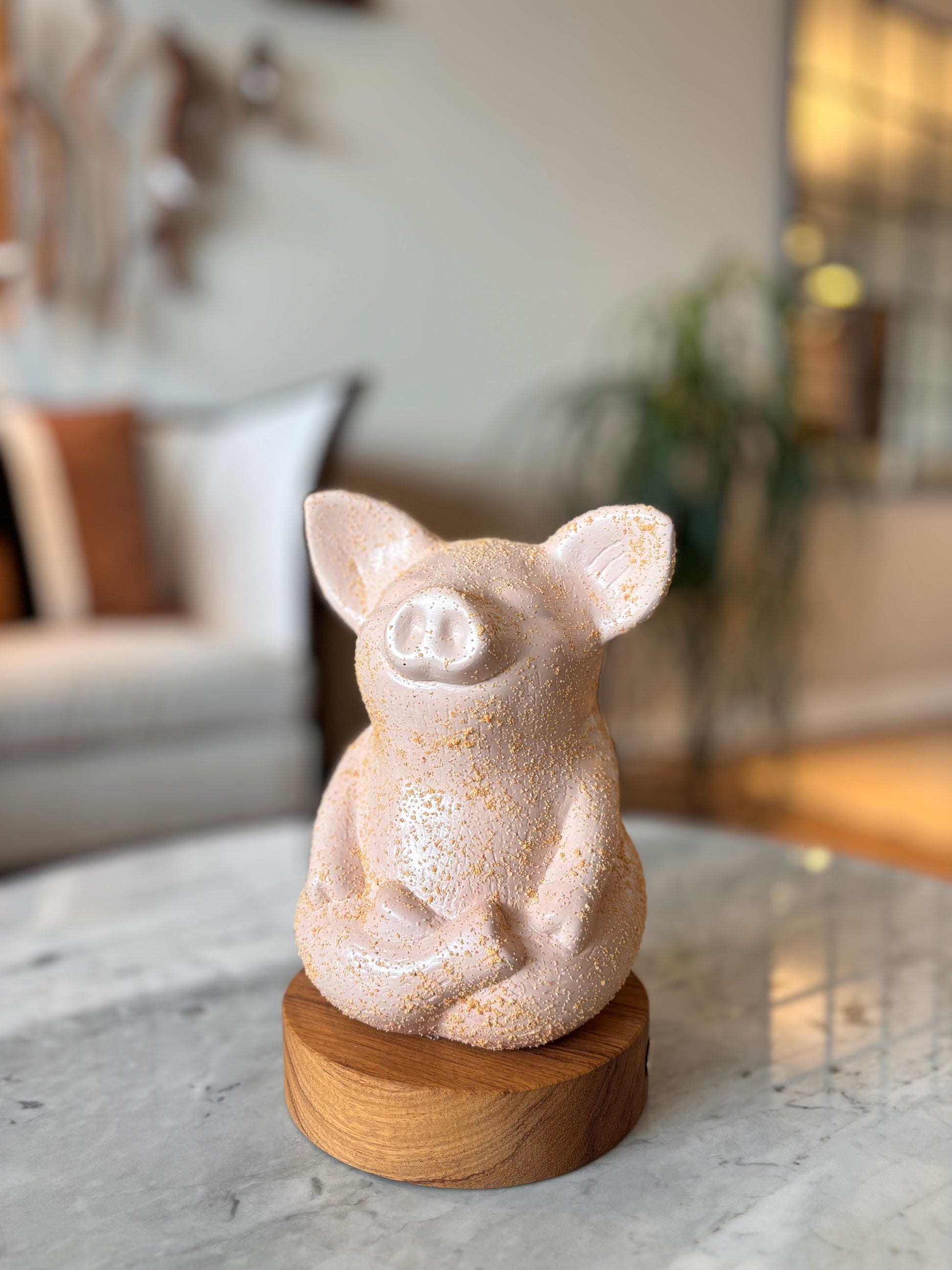Escultura de Ronnie, el chanchito/a Zen que le gusta meditar todos los días.